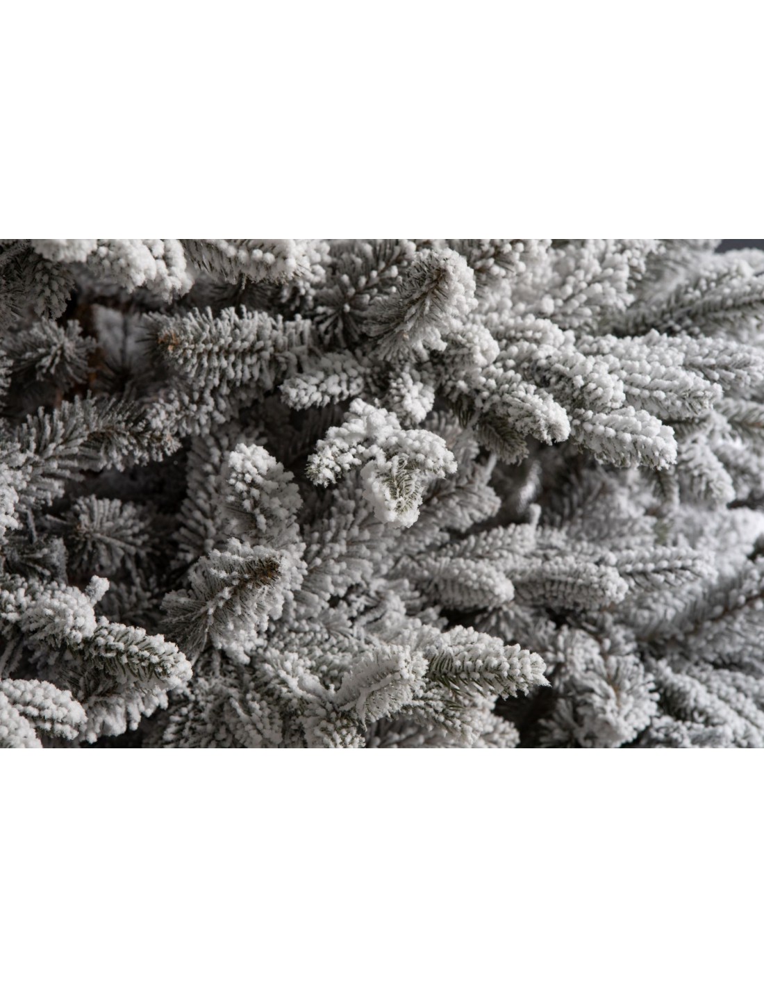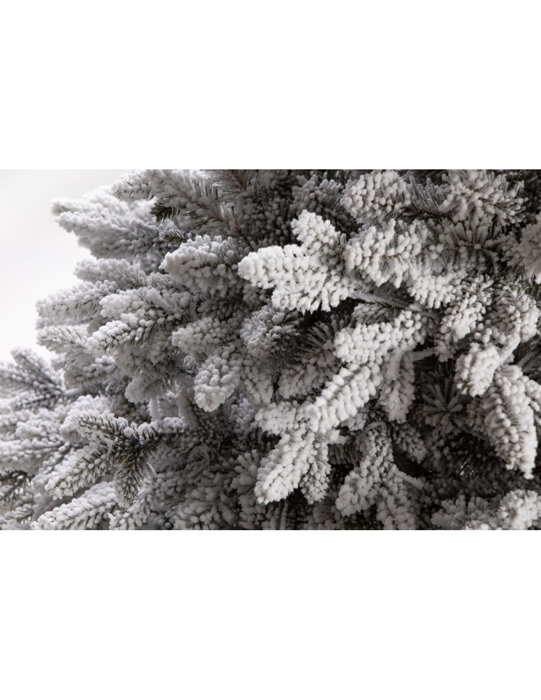 Lumi on tehtud pihustamismeetodil, kasutades puuvillast floki — biolagunevat materjali, mis kinnitub hästi okste külge. Pihustamisprotsess ja sobiv fikseerimine elimineerivad „kukkuva” lume probleemi ja tagavad püsiva, realistliku koheva katte efekti.