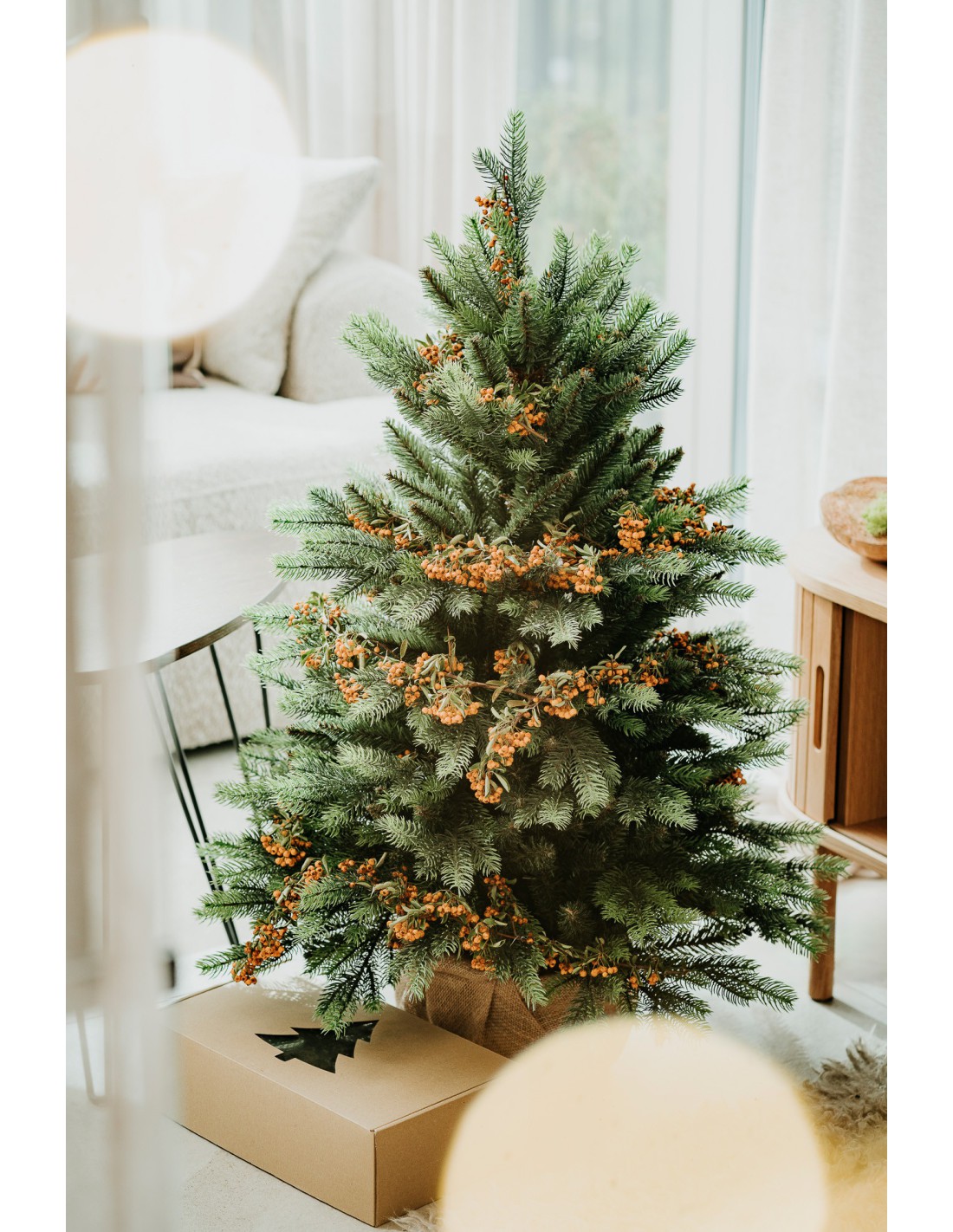 • Kuusk on paigutatud potti, mis tagab selle stabiilsuse ja lihtsustab puu paigutamist soovitud kohta. Potti saab omal käel asetada jõuluteemalisse katte, näiteks jute kangasse.
