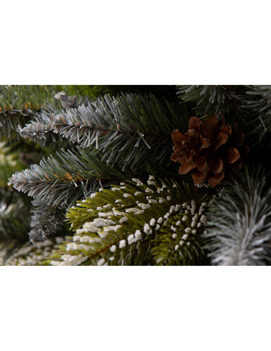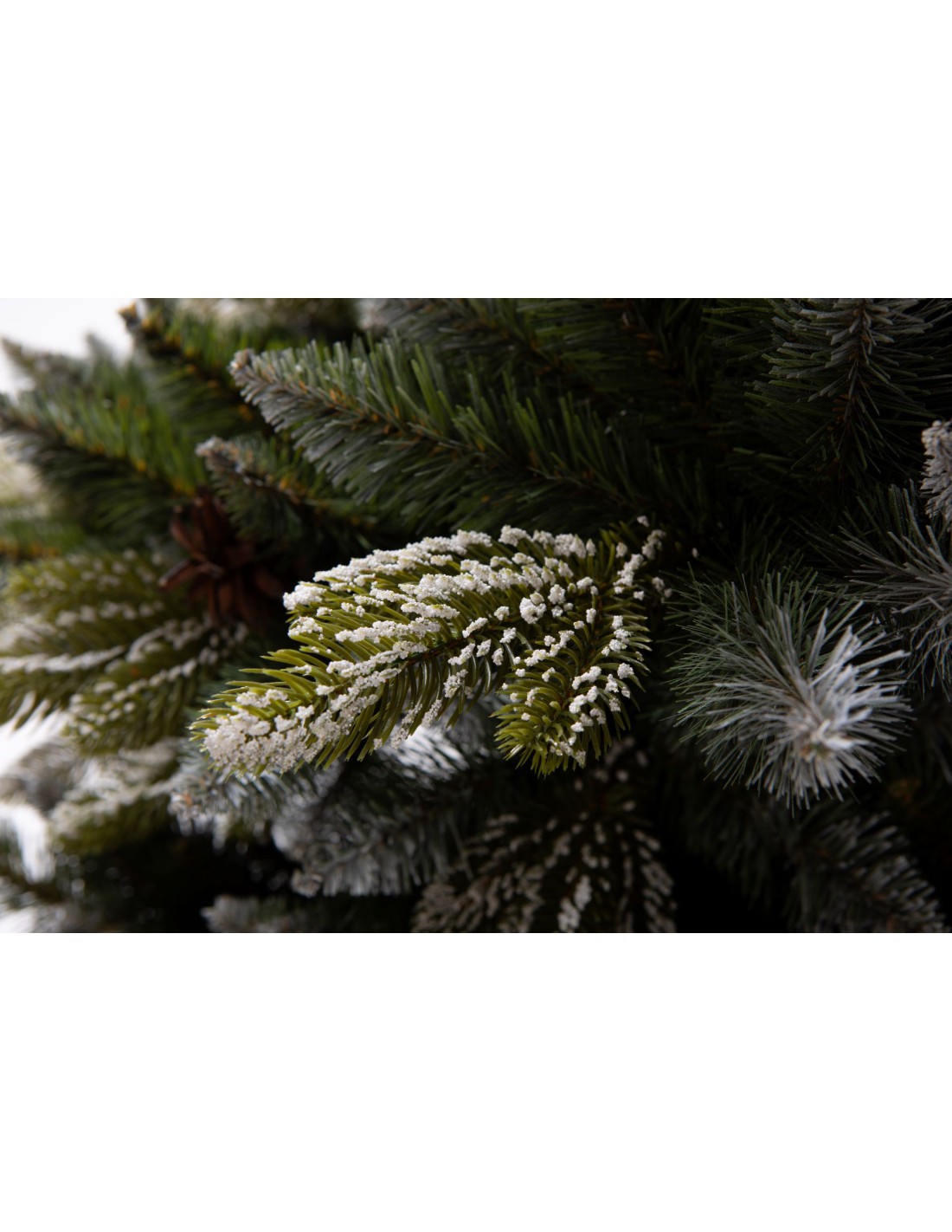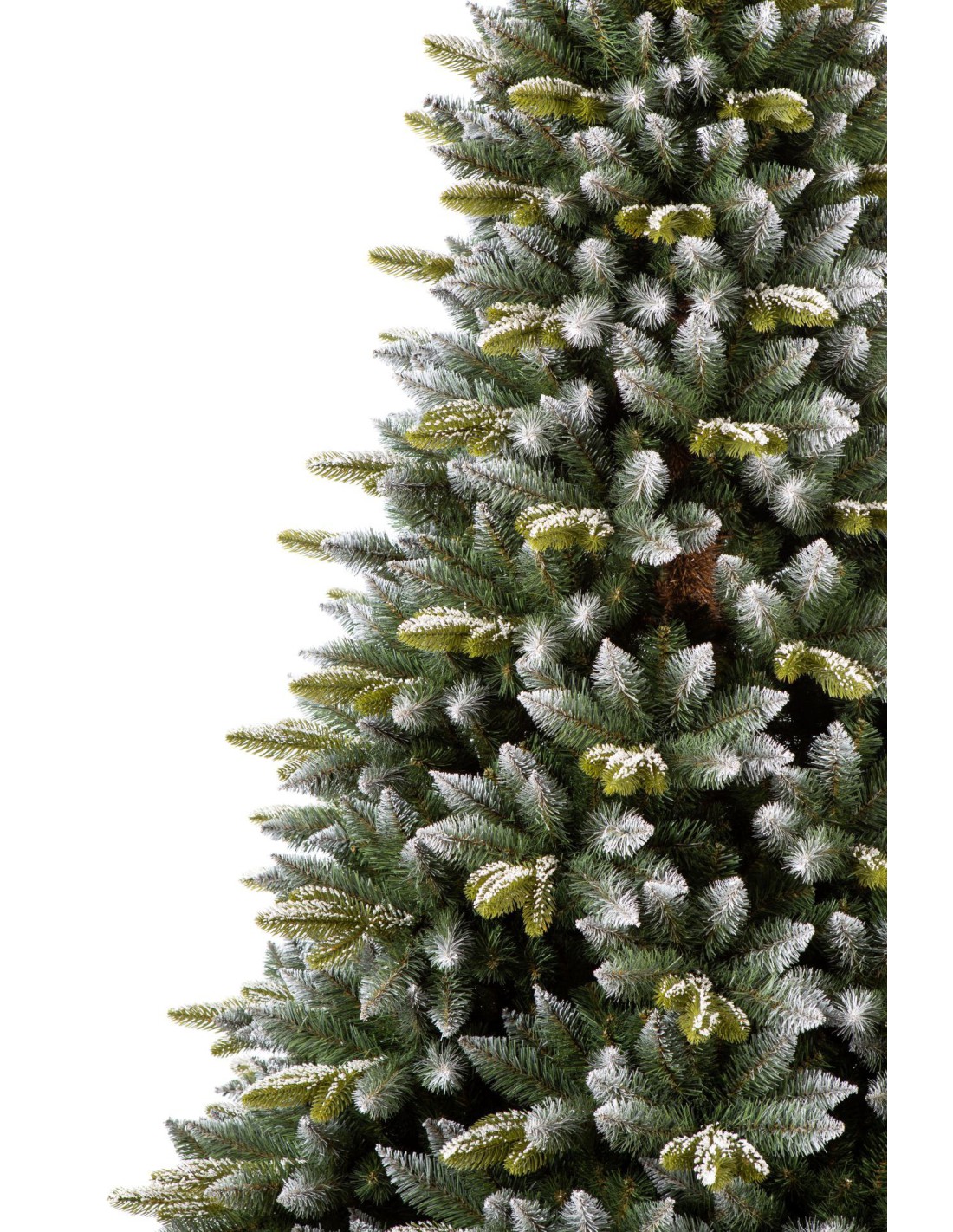 Ši savybė būdinga iš PE pagamintoms antgaliams; PVC antgaliai visada turi spyglius aplinkui. Antgaliai su spygliais tik viršuje ir šonuose sukuria įspūdį, kad šakos linksta nuo sniego svorio. Šis sąmoningas dizainas sukuria unikalų vaizdą.