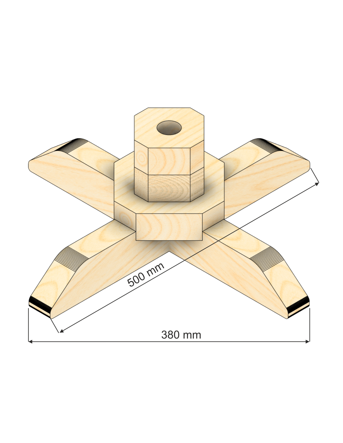 Premium kalėdų eglutės stovai (savarankiškai išsiskleidžiantys), su 33 mm skersmens kamienu. Estetiškas ir paprastas savo forma. Stilizuotas pagal XIX amžiaus Skandinavijos stovus. Pagamintas iš klijuotos pušies medienos. Tvirtas ir stabilus, su 19 cm aukščio cokolu. Šakų ilgis 50 cm, telpa į kvadratą, kurio matmenys 40x40 cm.