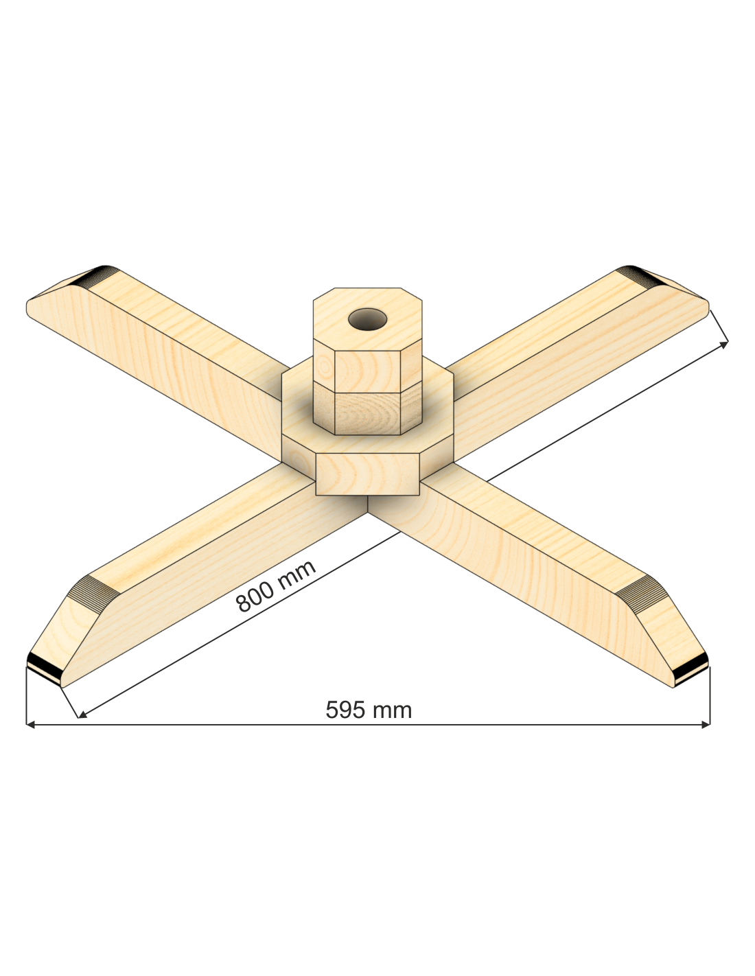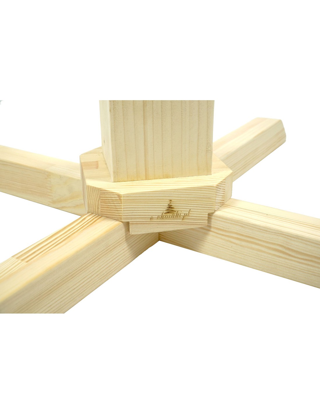 Premium kalėdų eglutės stovas (savarankiškai išsiskleidžiantis), su kamieno skersmeniu 33 mm. Estetiškas ir paprastas savo forma. Stilizuotas pagal XIX a. Skandinavijos stovus. Pagamintas iš klijuotos pušies medienos. Tvirtas ir stabilus, su 19 cm aukščio cokolu. Šakų ilgis 80 cm, telpa į kvadratą, kurio matmenys 61x61 cm.